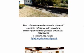 Gestore2020-02-13T13:38:20+01:00Domenica 16 febbraio avremo il piacere di avere in visita al Maglietto un gruppo di Scout di Novi Ligure. Tutti coloro che desiderano visitare il Maglietto e il Museo dell'Apicoltura saranno i benvenuti. Orario di apertura: dalle ore 10 alle [...]