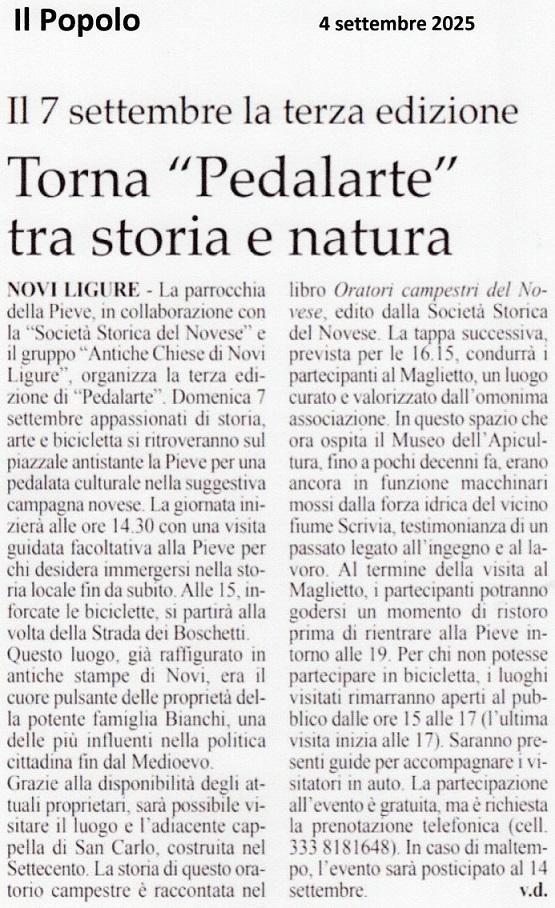 26 settembre 2019 Il Novese -Al maglietto apertura straordinaria del museo